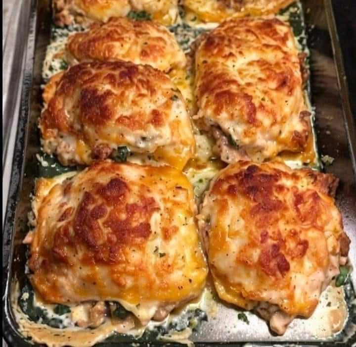 - Remove the chicken from the oven and let it rest for a few minutes. Garnish with fresh parsley if desired, and serve with your favorite side dishes like roasted vegetables, mashed potatoes, or a fresh salad.