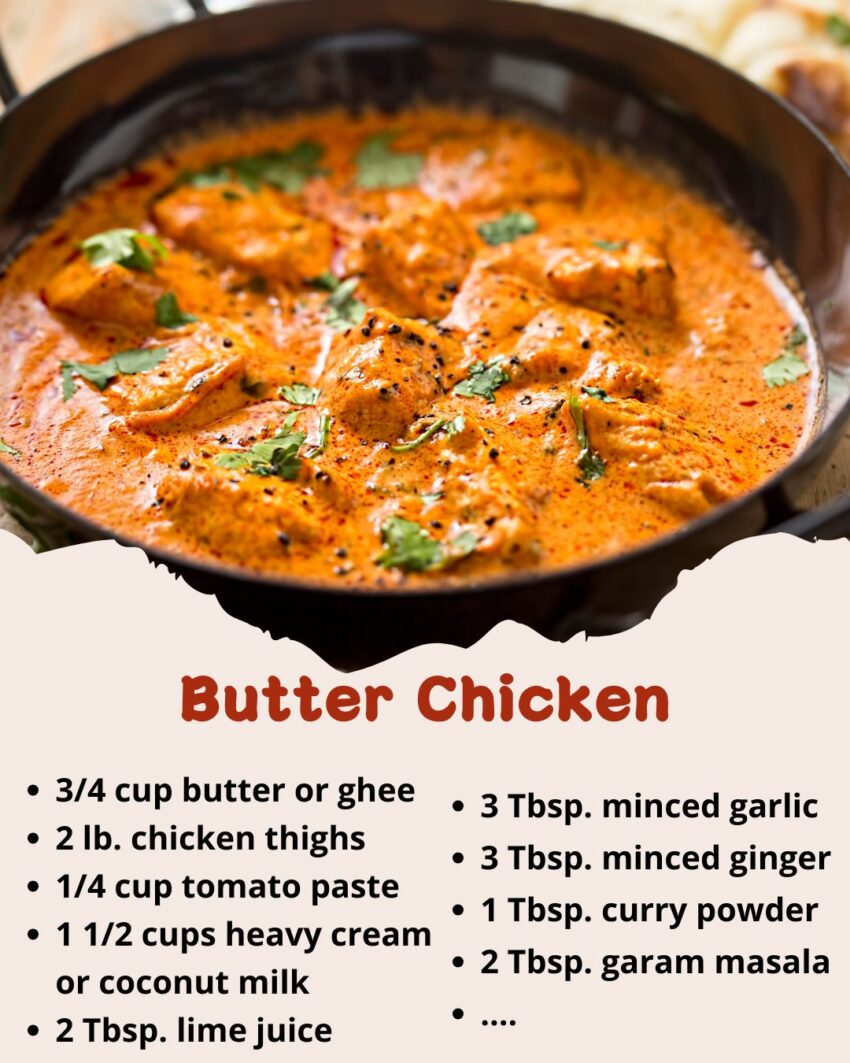 Butter chicken, also known as murgh makhani, is a popular Indian dish known for its creamy tomato-based sauce and tender chicken. Here’s a simple recipe for making butter chicken at home: