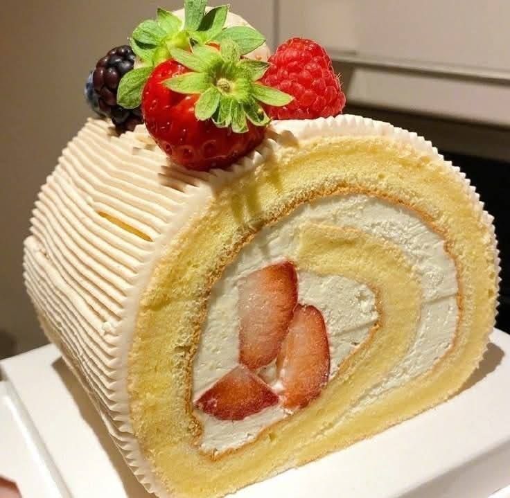 A cake roll (also called a Swiss roll or jelly roll) is a type of sponge cake that’s baked in a thin layer, filled (commonly with cream, jam, or frosting), and then rolled into a log shape. It’s light, fluffy, and visually impressive when sliced to reveal the spiral of cake and filling.