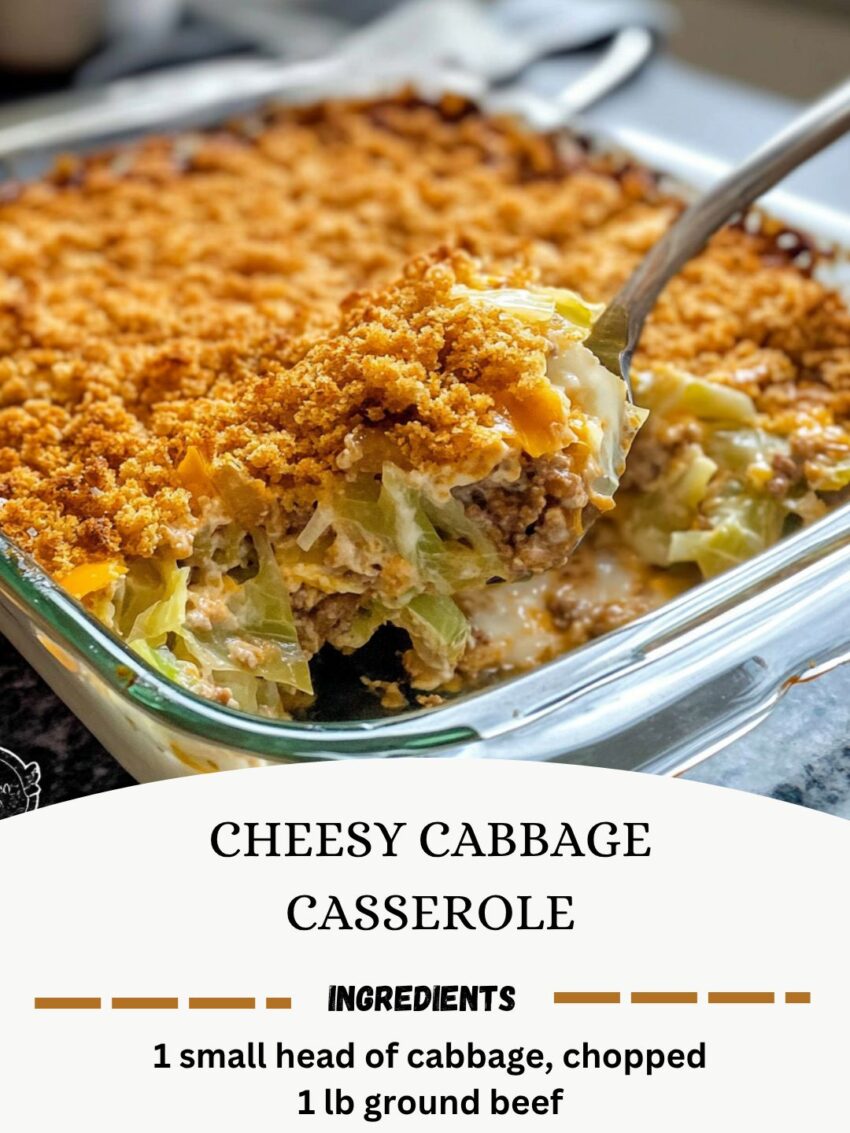 Here’s a comforting and easy Cheesy Cabbage Casserole recipe — creamy, cheesy, and full of flavor!