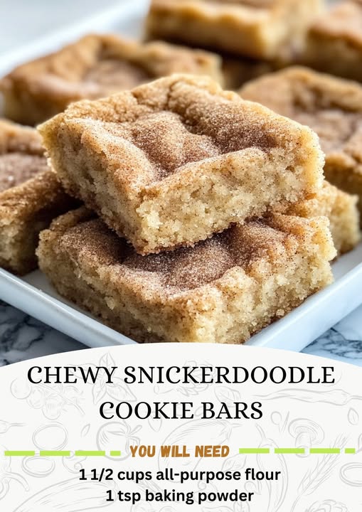 Here’s a delicious recipe for Chewy Snickerdoodle Cookie Bars – all the cinnamon-sugar flavor of classic snickerdoodles, in soft, buttery bar form: