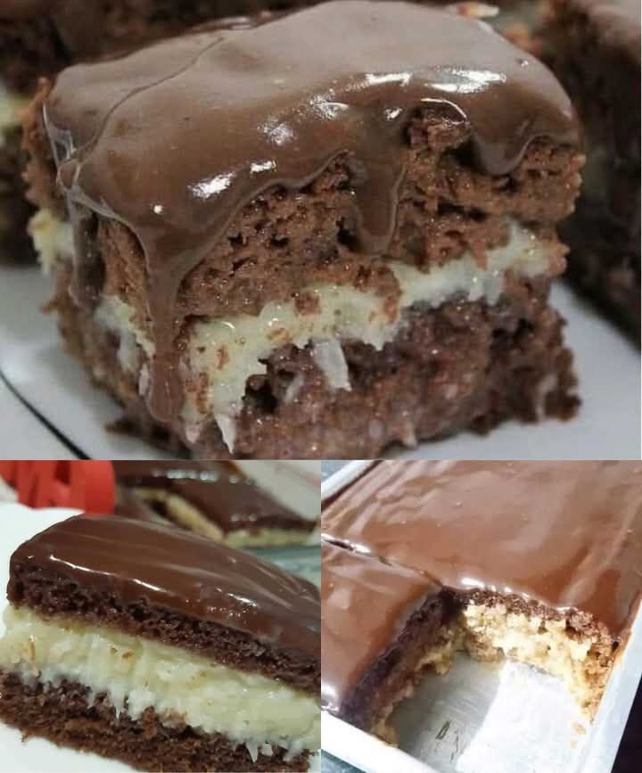 - Slice and enjoy this rich chocolate cake with its creamy, coconut filling!