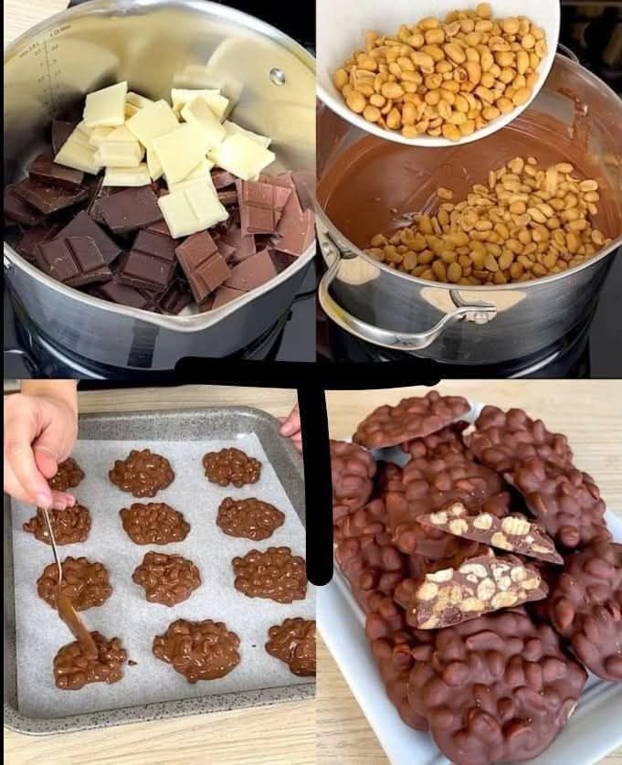 Ingredients: Roasted peanuts (salted or unsalted) and melted chocolate (milk, dark, or white).