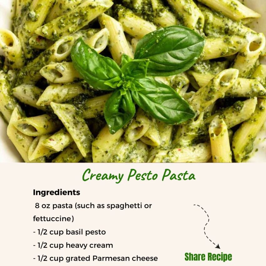 Creamy Pesto Pasta is a delicious and simple dish that combines the rich flavors of basil pesto with creamy sauce and pasta. Here’s a basic recipe to make it: