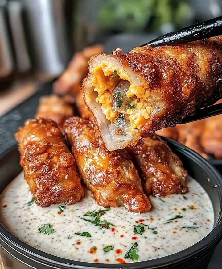 • Serve the crispy egg rolls with the sweet chili sauce on the side for dipping.
