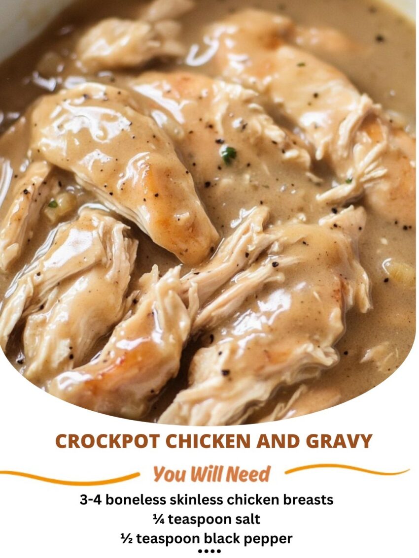 Here’s a simple and tasty recipe for Crockpot Chicken and Gravy: