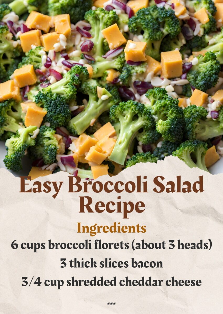 Feel free to adjust the ingredients according to your taste preferences. You can add other ingredients like crispy bacon bits, shredded cheese, or sliced almonds for extra flavor and texture. Enjoy your broccoli salad!