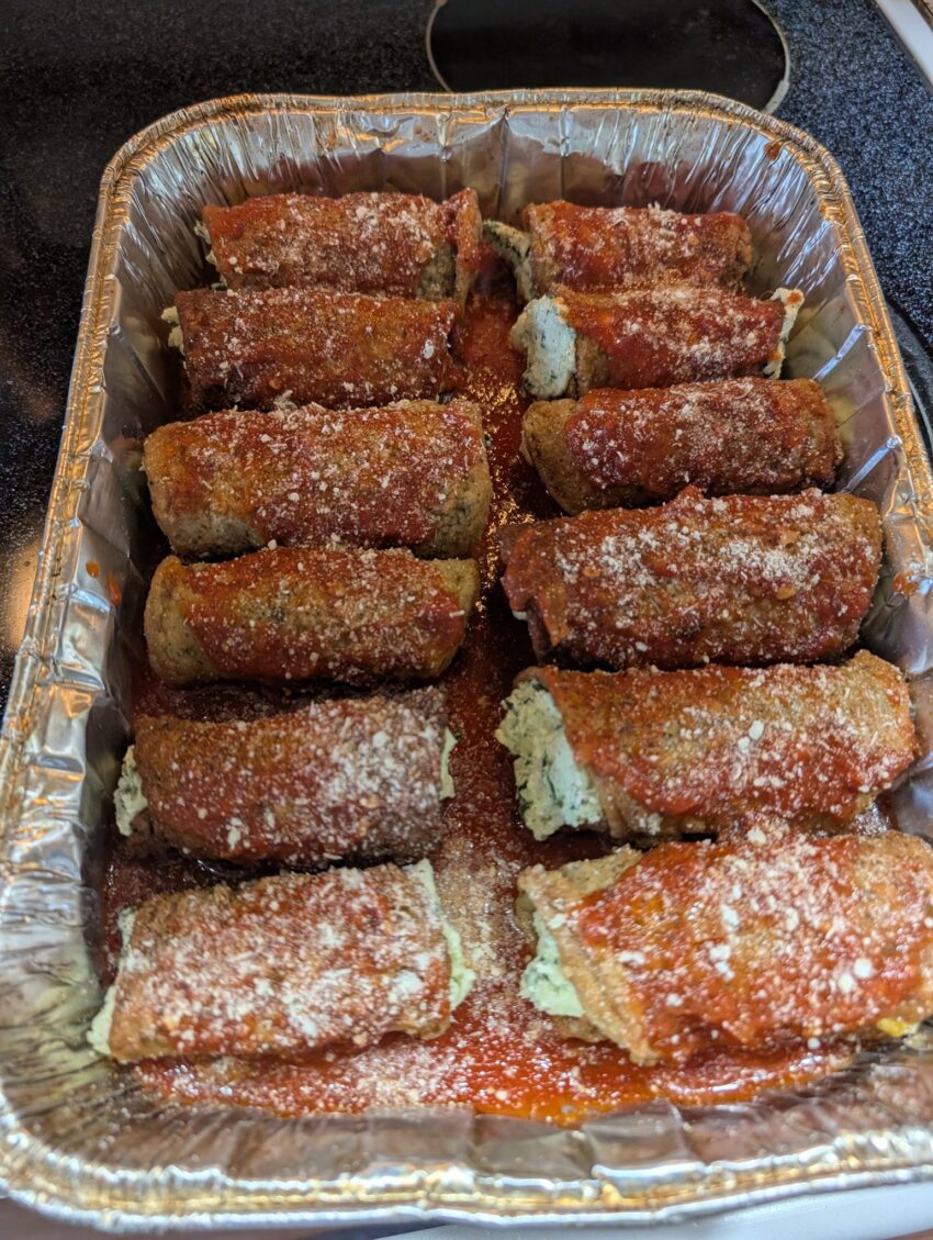 Spoon remaining sauce over the rolls, sprinkle with remaining mozzarella, and cover with foil.