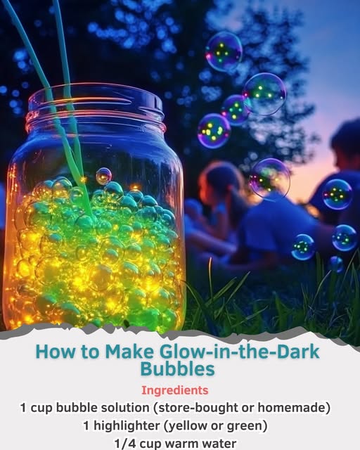 Here’s a fun and easy recipe to make Glow-in-the-Dark Bubbles—perfect for nighttime play, parties, or spooky outdoor fun!