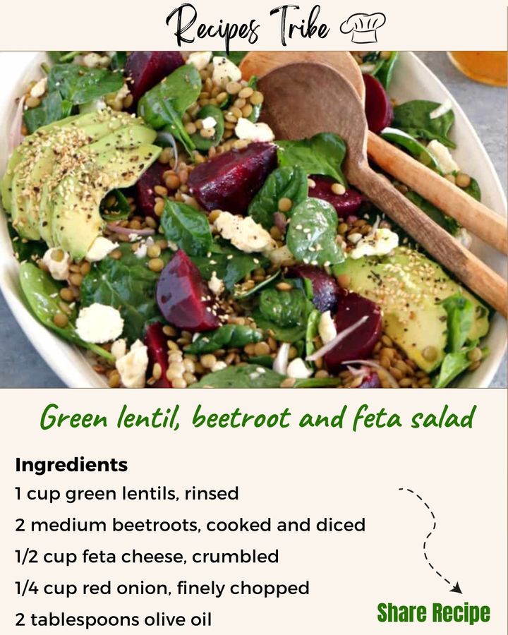 - Serve immediately or refrigerate until ready to serve. Enjoy your nutritious and flavorful green lentil, beetroot, and feta salad!