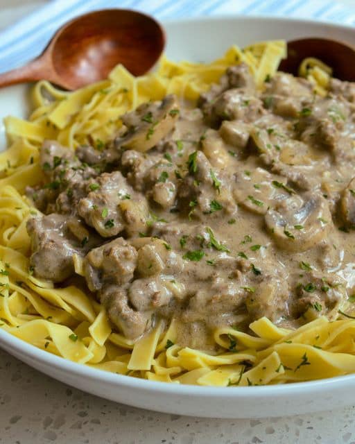 • Serve the beef stroganoff over cooked egg noodles or rice.