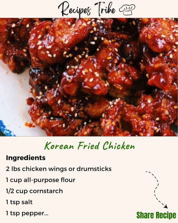 Korean fried chicken is a delicious dish known for its crispy texture and flavorful sauce. Here’s a simple recipe for you to try at home: