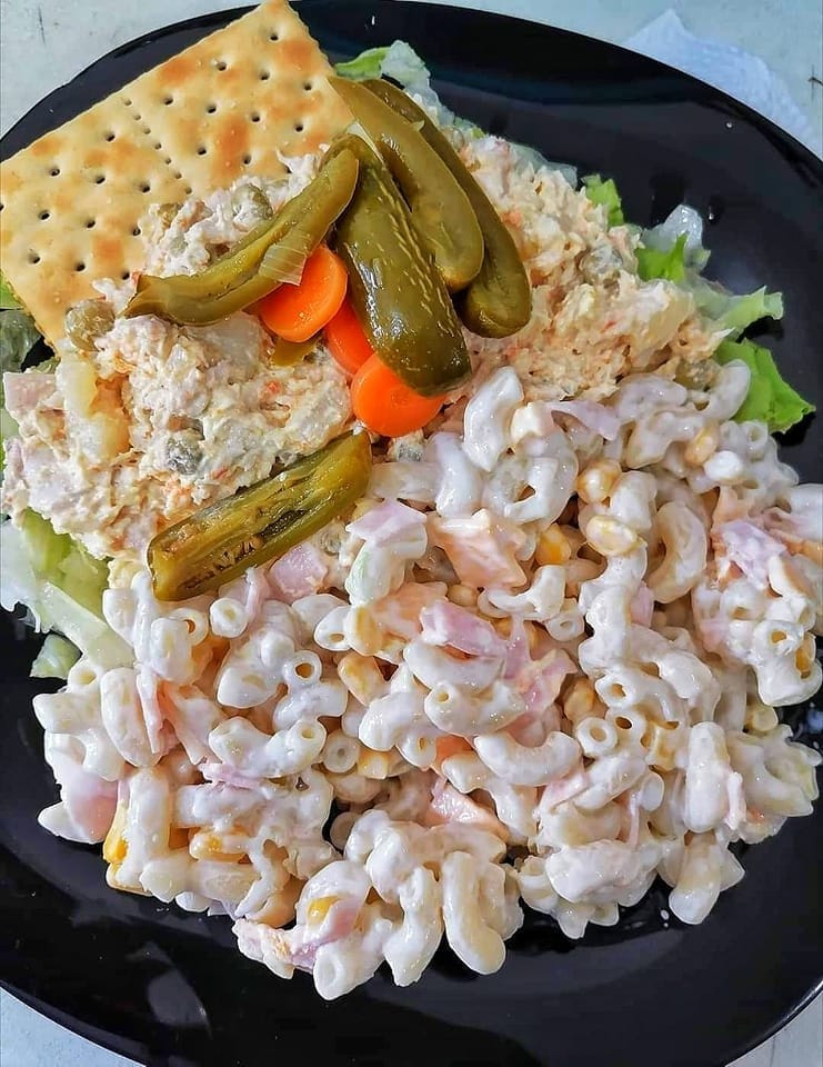 Mix the salad: In a large bowl, combine chicken, corn, peas, carrots, potatoes, bell pepper, jalapeños, and any other veggies you’re using.