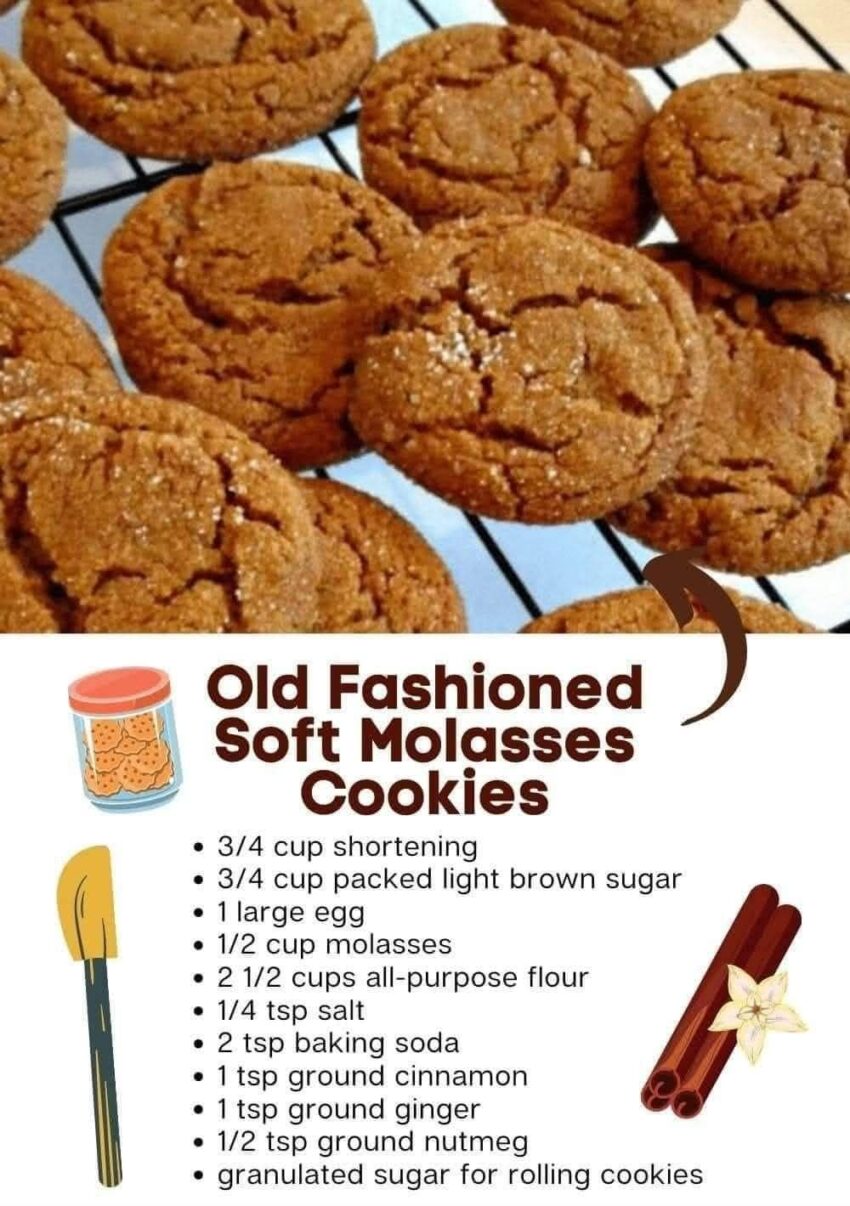 Here is a classic recipe for Old Fashioned Soft Molasses Cookies:
