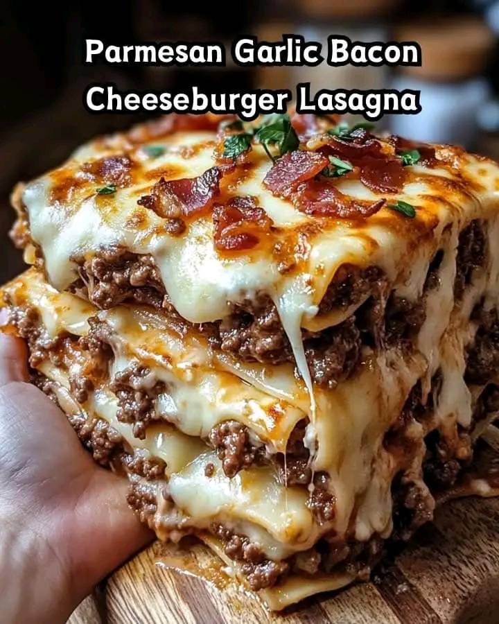 Parmesan Garlic Bacon Cheeseburger Lasagna sounds like a deliciously indulgent fusion dish! Below is a recipe that combines the savory flavors of a classic cheeseburger with the rich layers of lasagna, incorporating parmesan, garlic, and crispy bacon.