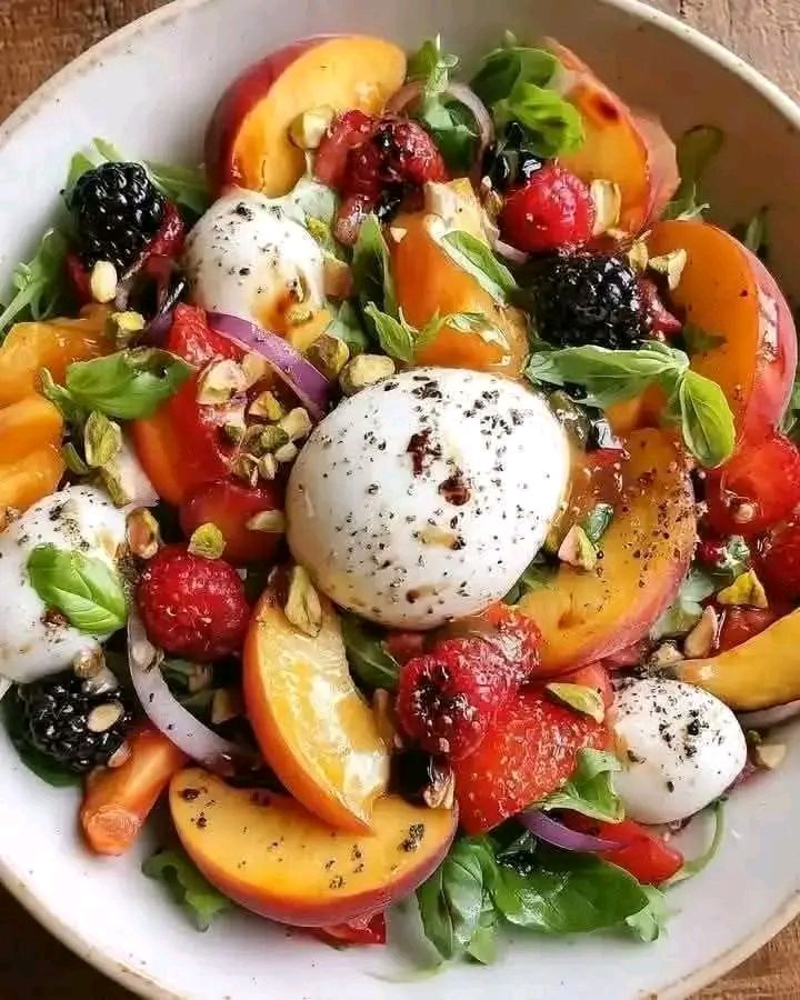Here’s a fresh and delicious Peach Burrata Salad recipe that’s perfect for summer: