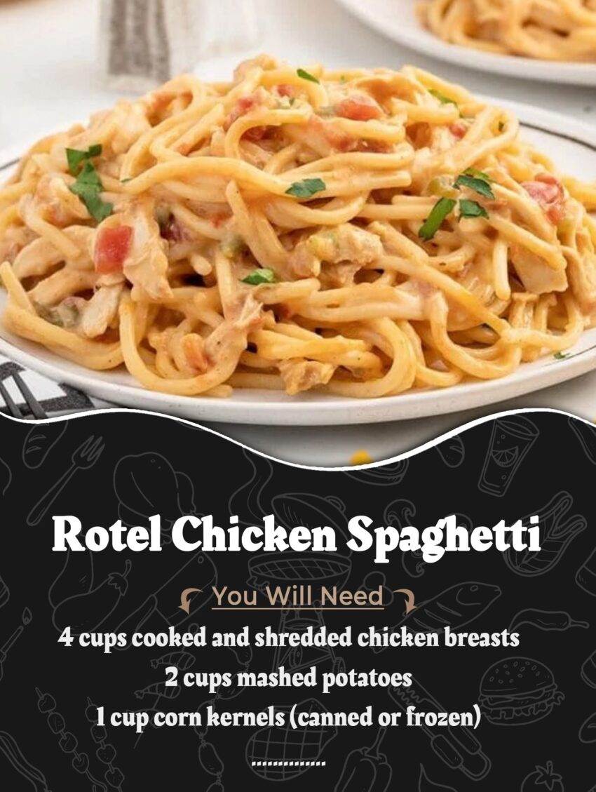 Rotel Chicken Spaghetti is a delicious and easy-to-make dish that combines tender chicken, creamy cheese, and spicy Rotel tomatoes with spaghetti noodles. Here’s a simple recipe to try: