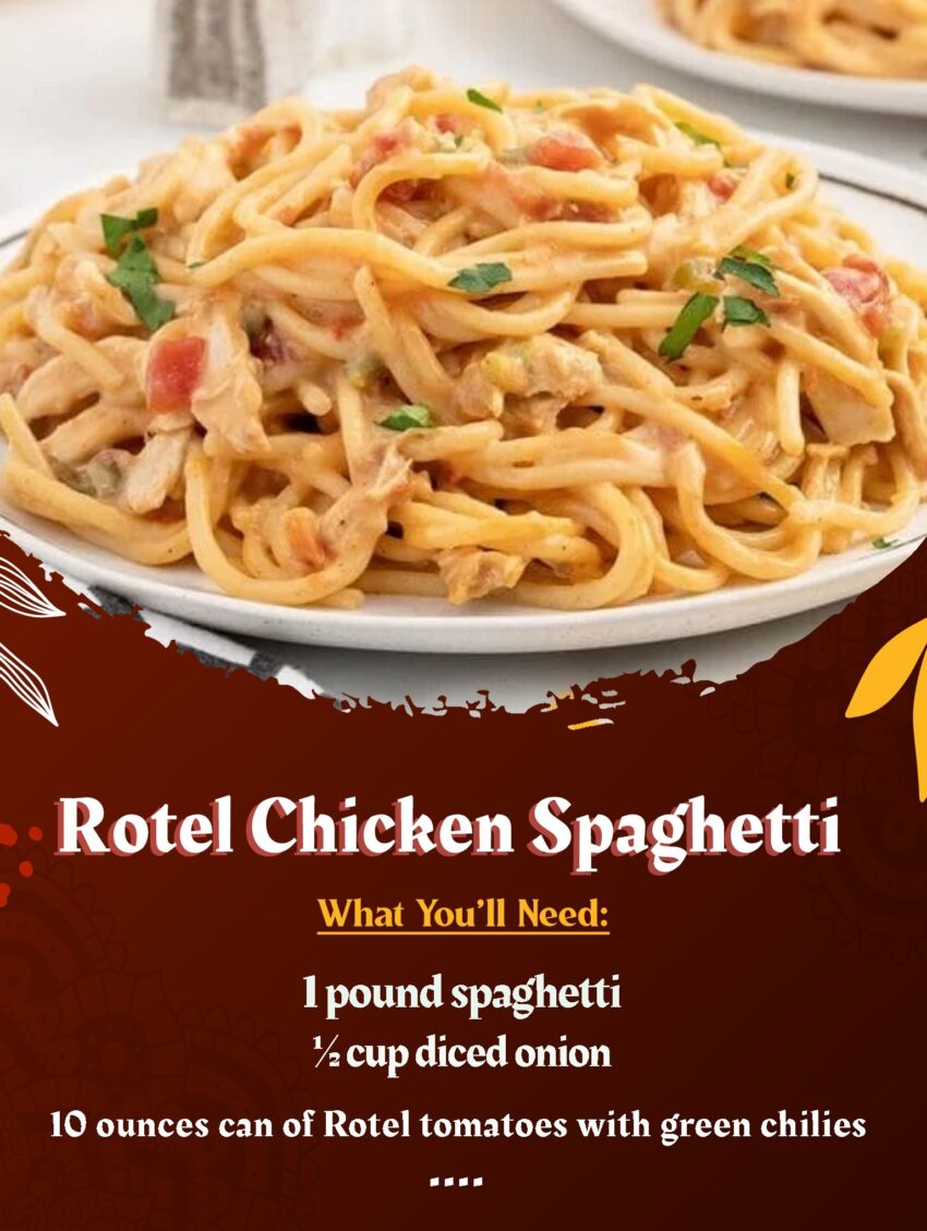 Rotel Chicken Spaghetti is a popular dish made with chicken, spaghetti noodles, Rotel tomatoes (which are diced tomatoes with green chilies), and typically some cheese and spices. Here’s a basic recipe to get you started: