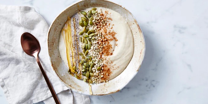 • Blend until smooth and creamy. If the consistency is too thick, you can add a bit more almond milk to reach your desired thickness.