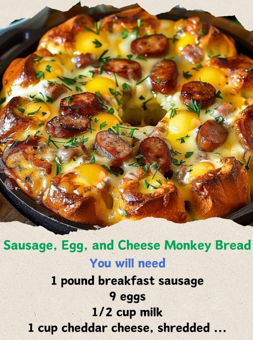 Sausage, Egg, and Cheese Monkey Bread is a delicious and savory twist on the classic sweet monkey bread. Here’s a simple recipe to make this flavorful dish: