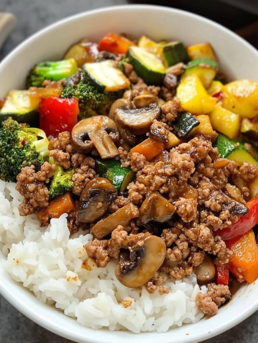 A Savory Ground Turkey & Roasted Veggie Rice Bowl is a delicious and nutritious meal that’s easy to make and perfect for meal prep. Here’s a simple recipe for you to try: