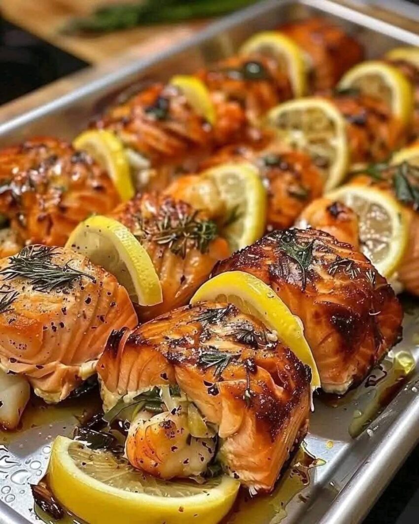 Seafood Symphony Wrapped in Salmon is a delightful, sophisticated dish that features an elegant combination of fresh seafood wrapped in a tender layer of salmon. It creates a symphony of flavors, blending the richness of salmon with the delicate sweetness of shrimp, scallops, or crab. Here’s how to make it: