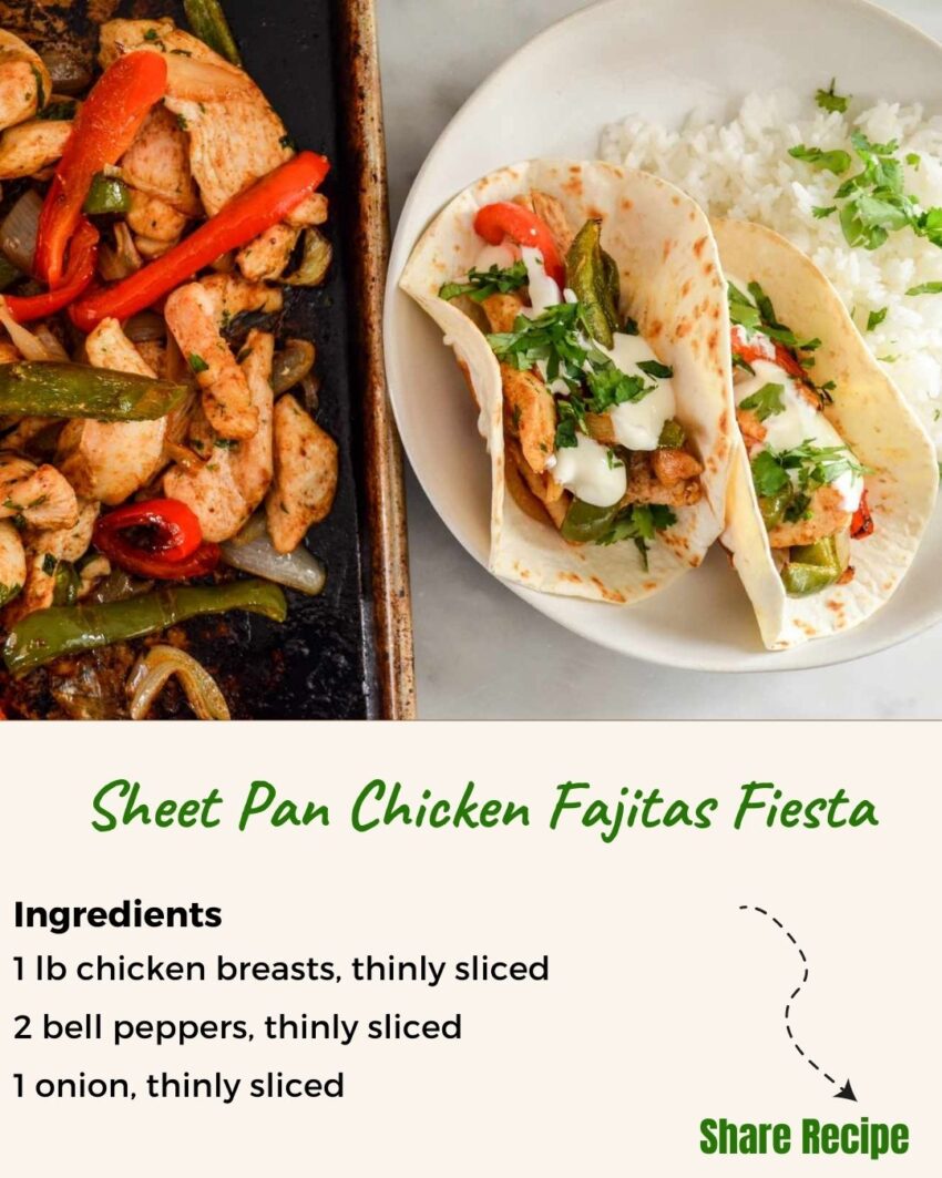 Here’s a simple recipe for Sheet Pan Chicken Fajitas Fiesta: