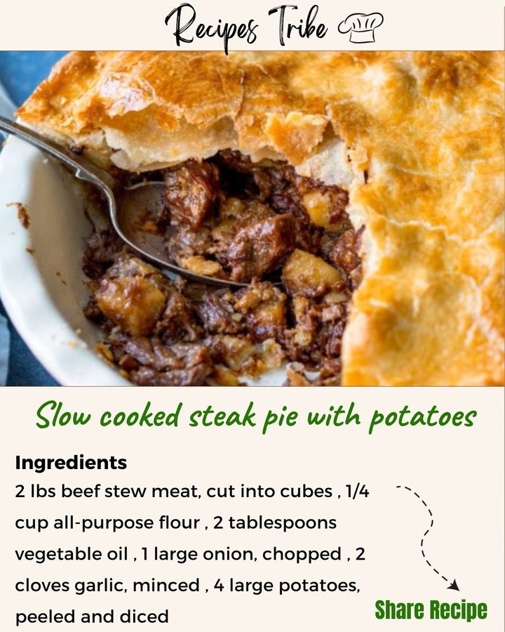 Slow cooked steak pie with potatoes is a hearty and comforting dish perfect for colder days. Here’s a simple recipe to try: