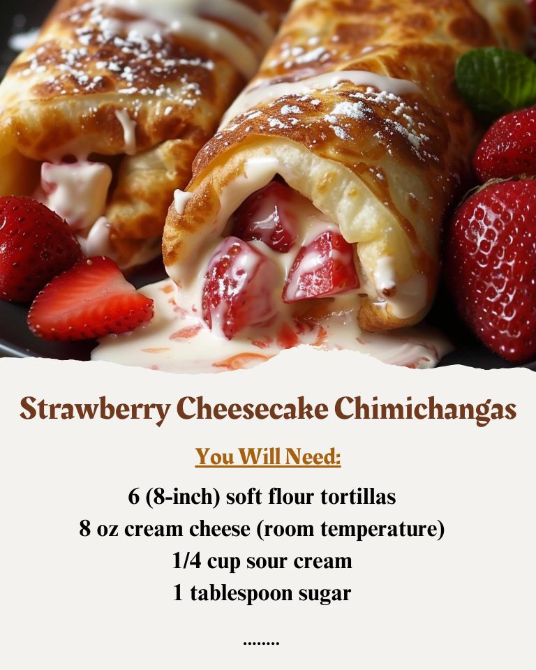 Strawberry Cheesecake Chimichangas are a delicious and indulgent dessert that combines the flavors of cheesecake with the fun, crispy texture of a chimichanga. Here’s a basic recipe to get you started: