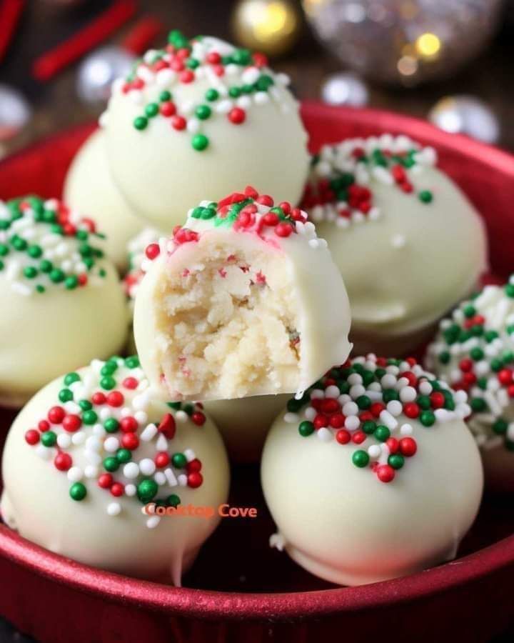 Sugar Cookie Truffles are a sweet, no-bake dessert that combines the delicious flavors of sugar cookies with the smooth texture of chocolate or candy coating. They’re perfect for holiday parties, gift-giving, or any time you want to indulge in a treat. Here’s a simple recipe to make these decadent treats: