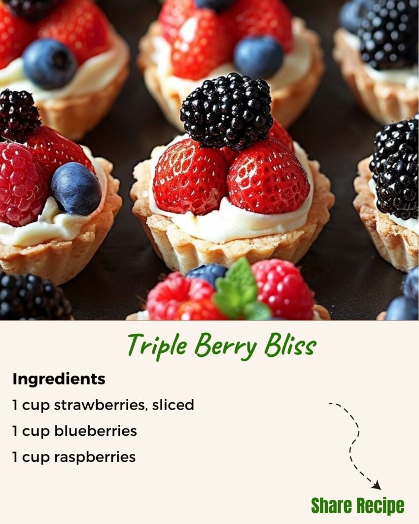 Here’s a delicious recipe for Triple Berry Bliss that combines the goodness of three different berries into a delightful dessert or snack: