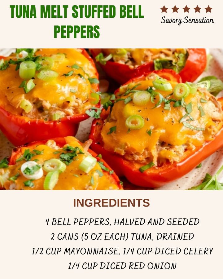 Tuna melt stuffed bell peppers are a delicious and nutritious twist on the classic tuna melt sandwich. Here’s a simple recipe to make them: