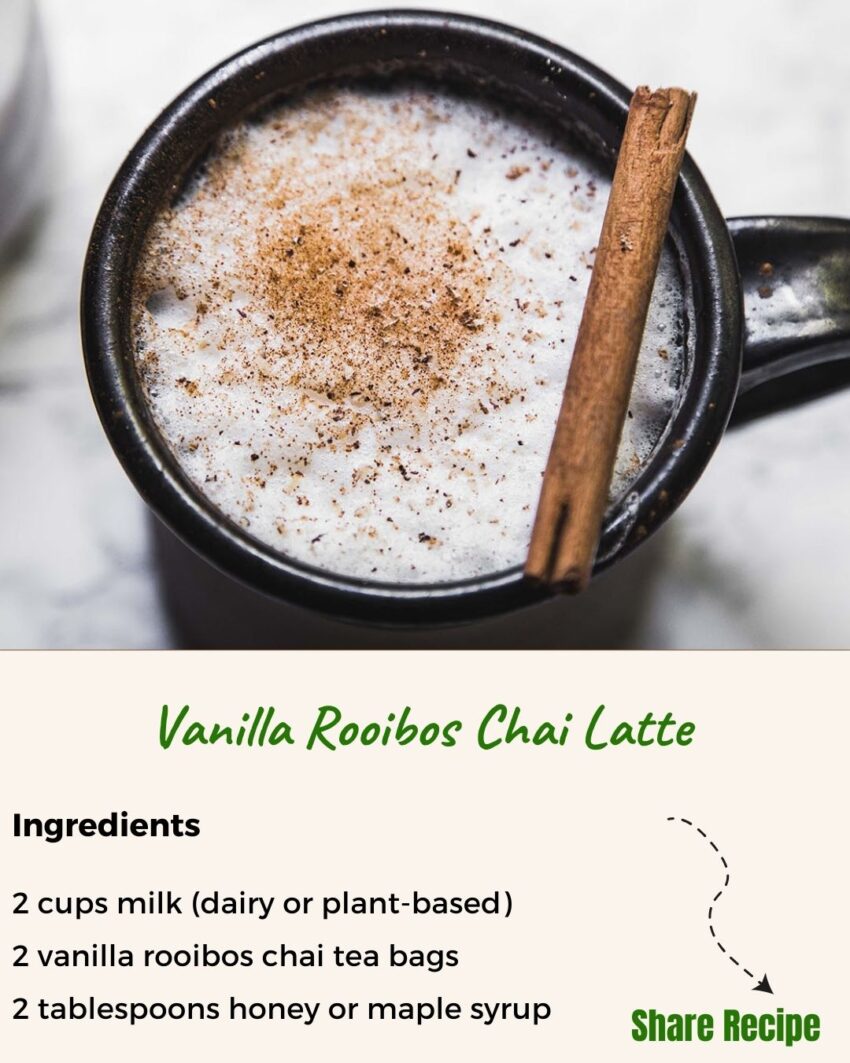 - Serve and enjoy your delicious Vanilla Rooibos Chai Latte!