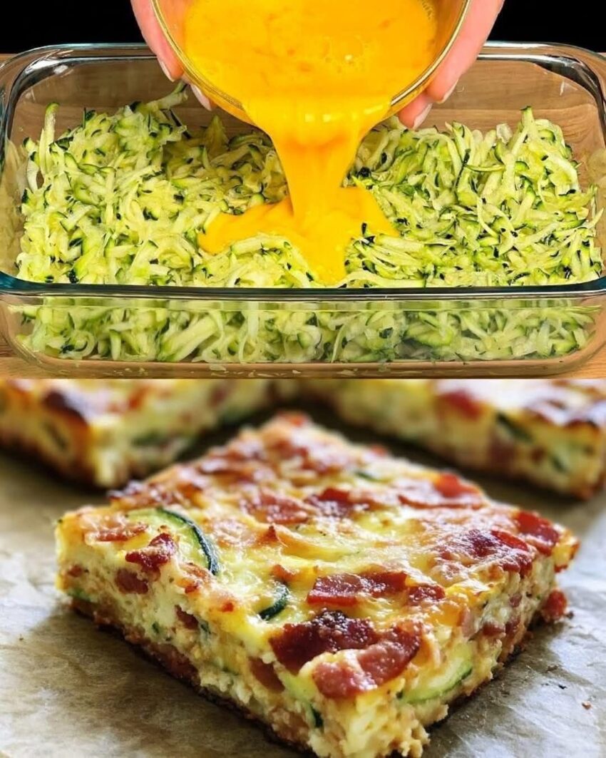 A Zucchini and Bacon Slice is a delicious savory dish, often served as a snack, light meal, or part of a brunch. It’s typically made with eggs, zucchini, bacon, and some kind of flour, often combined with cheese, herbs, and other seasonings. Here’s a simple recipe for you to try: